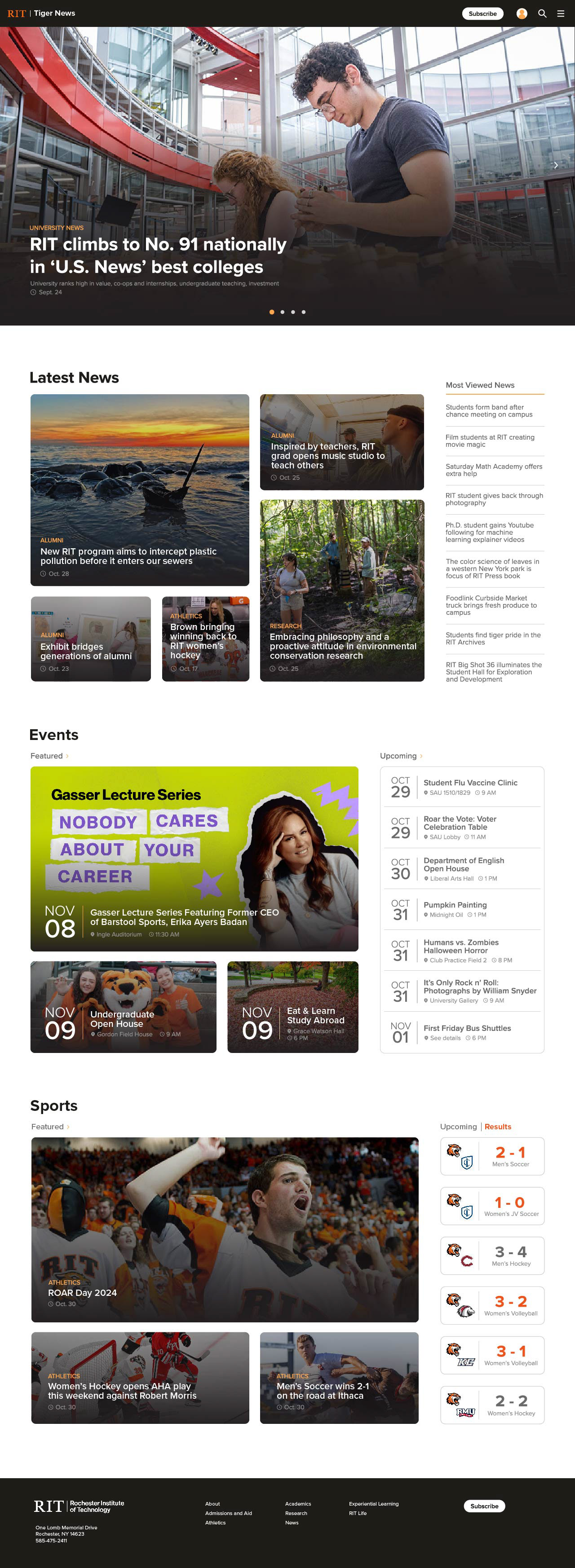 Create a graphical user interface for a reskin of the news homepage. Make it visually engaging, relevant, and informative, with a strong visual hierarchy